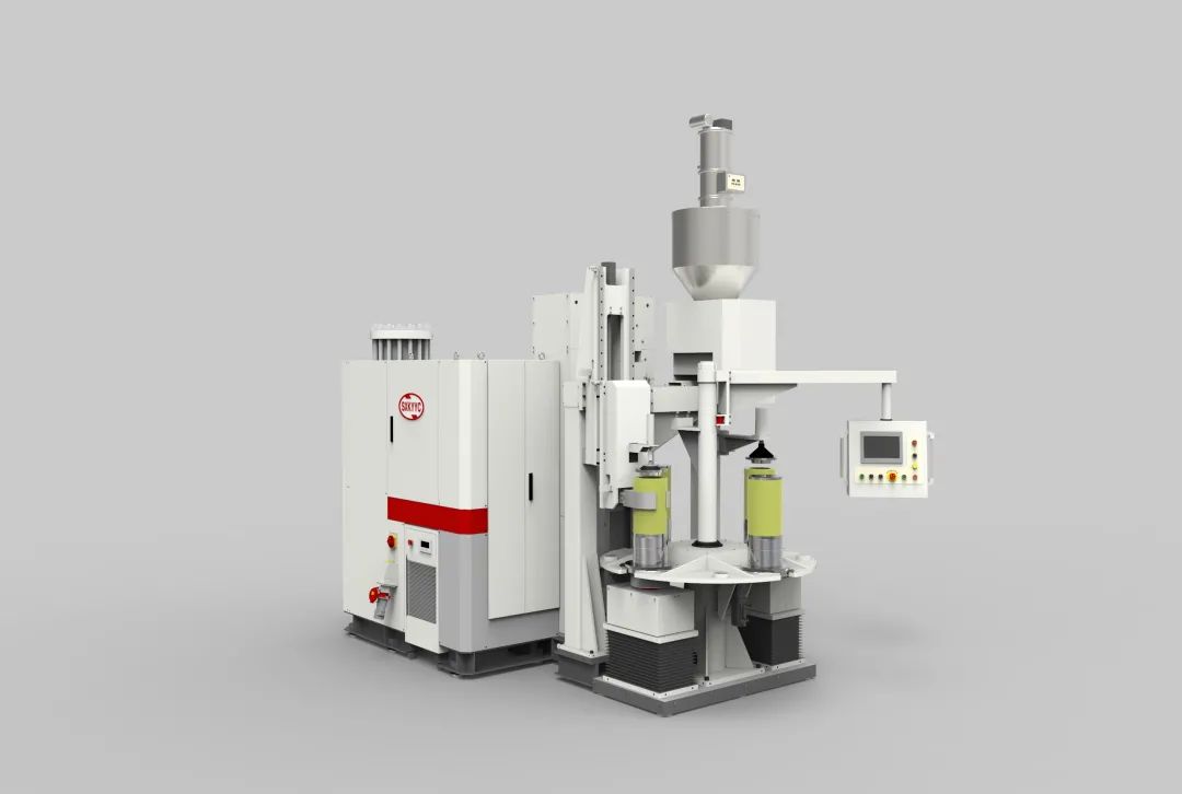 适合压制棒状或管状制品,可以多机联动,组合成自动化成型产线。